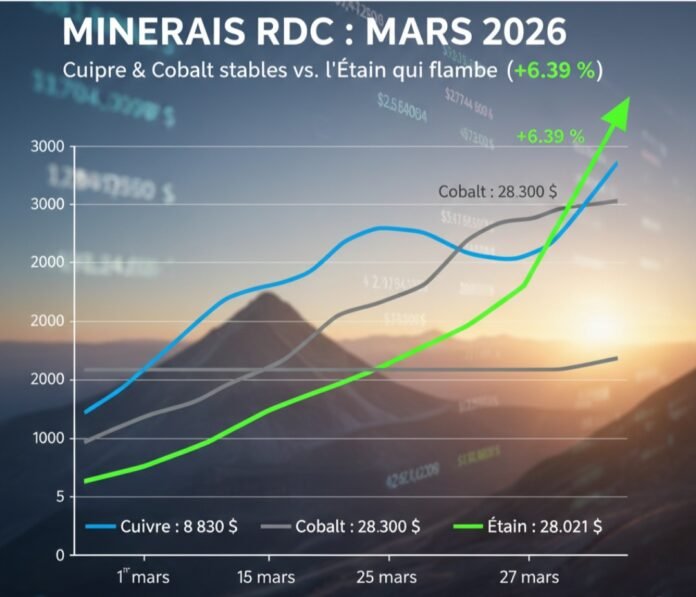 En ce mois de mars 2026, les piliers extractifs de la République Démocratique du Congo affichent une résilience stratégique. Tandis que le cuivre et le cobalt consolident leurs positions, l’étain s’impose comme la surprise du marché, offrant une bouffée d’oxygène inattendue aux prévisions de recettes d’exportation du pays.